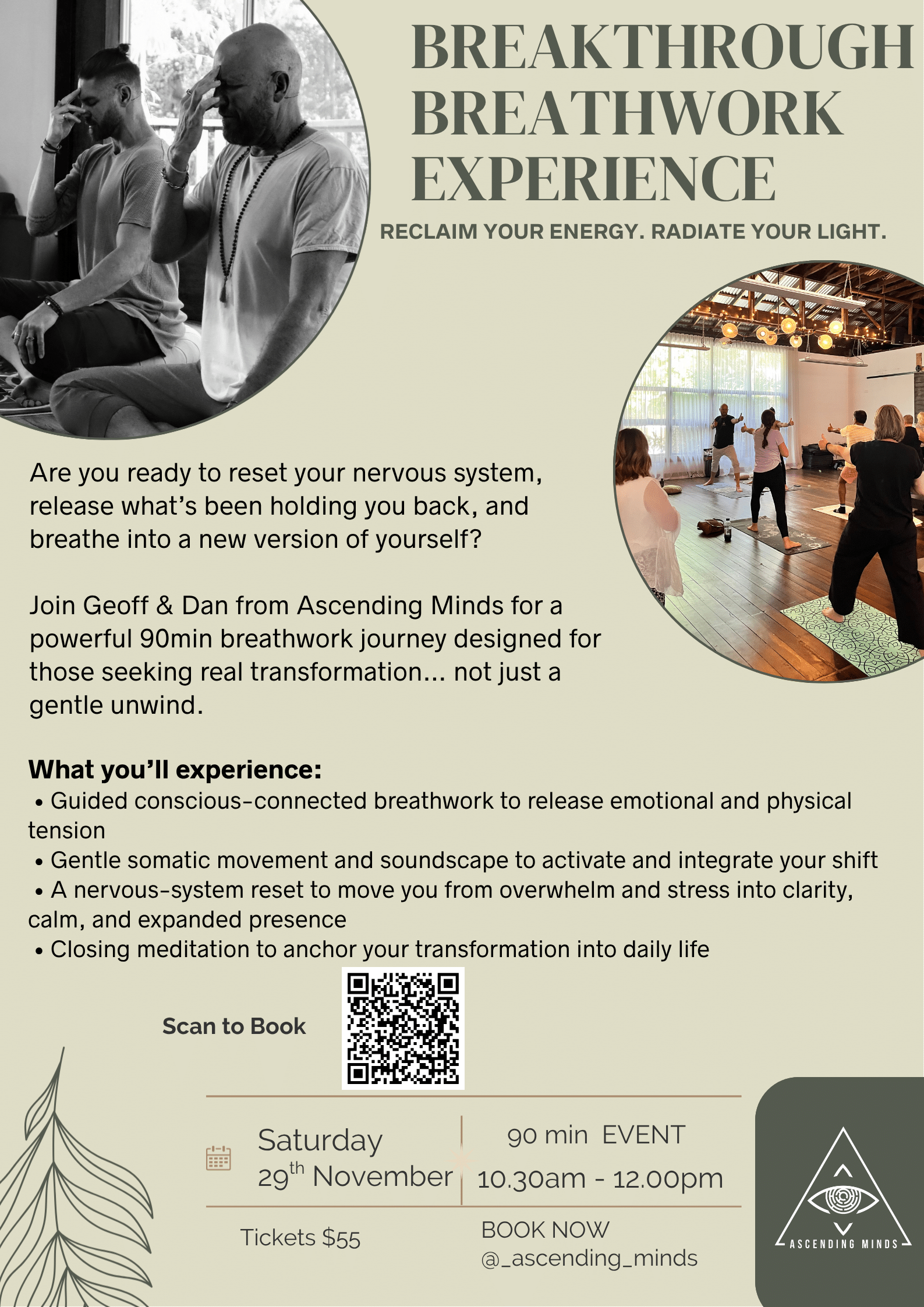 Join Geoff & Dan from Ascending Minds for a powerful 90min breathwork journey designed for those seeking real transformation… not just a gentle unwind.